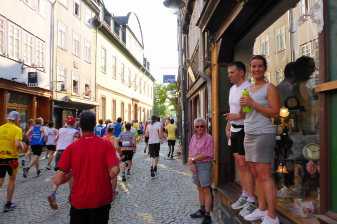 Tatsächlich ist auf der Finishermedaille das Mineralogische Museum. Ich weiß das, ich werde ja finishen. Dass Mineralogische Museum befindet sich im alten Backhaus des Deutschen Ordens, dem letzten Gebäude der Deutschritter, das erhalten geblieben ist. Hinter dem Hochzeitshaus jedenfalls ist das Marathon-WC zu finden. Wobei ich mich frage, wo die Halbmarathonläufer hingehen, wenns die mal drückt.