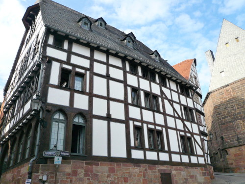 Wir laufen auf die Stadt zu und sehen das Landgrafenschloss auf dem Hügel über der Altstadt wie einen Scherenschnitt vor fast wolkenlosem, hellblau-weißem Hintergrund. Schade, dass ich das im Bild nicht besser festhalten kann. Aber solche Eindrücke sammelt man am besten selbst und live.