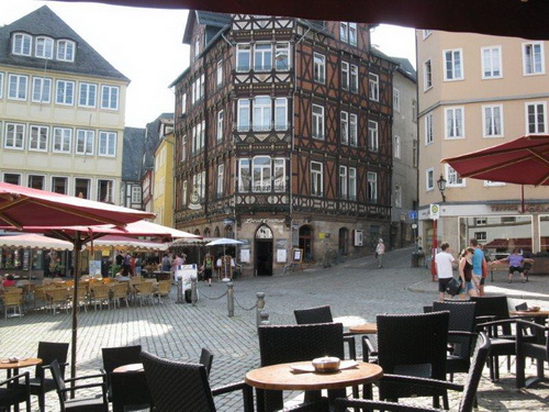 Wir haben noch genügend Zeit um uns am Lahnufer und in der romantischen Altstadt Marburgs umzuschauen. In den Cafes schaut man sich noch das Fußballspiel Niederlande gegen Brasilien an. Die Sympathien sind eindeutig bei den Niederländern.