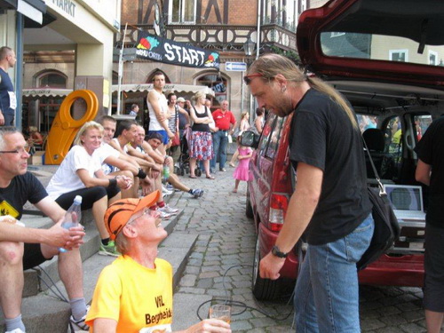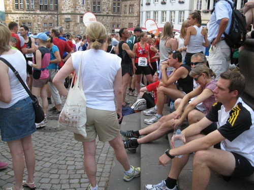 Ich gehe nochmals zu meinem Auto und bereite mich auf den Start vor. An der Startnummernausgabe haben sich jetzt Schlangen gebildet, aber bis zum Start werden alle ihre Unterlagen haben. Die Zeitnahme erfolgt hier in Marburg mit dem in der Startnummer integrierten Bipchip.