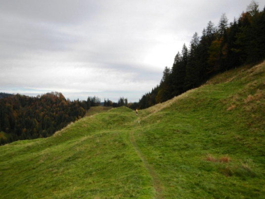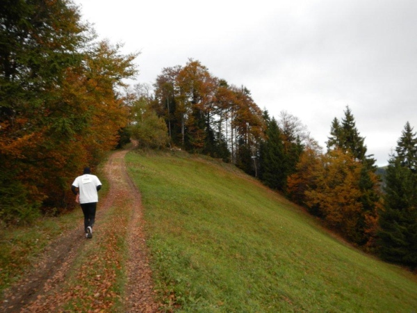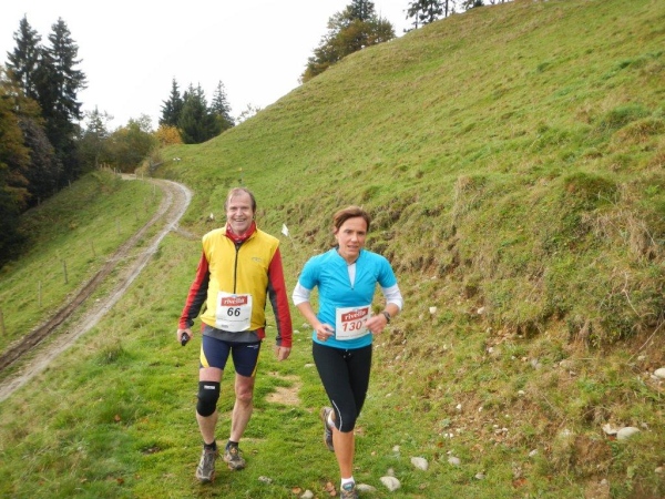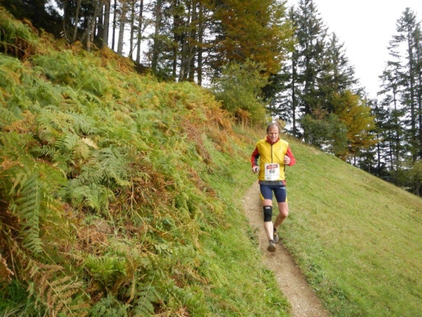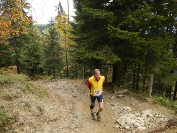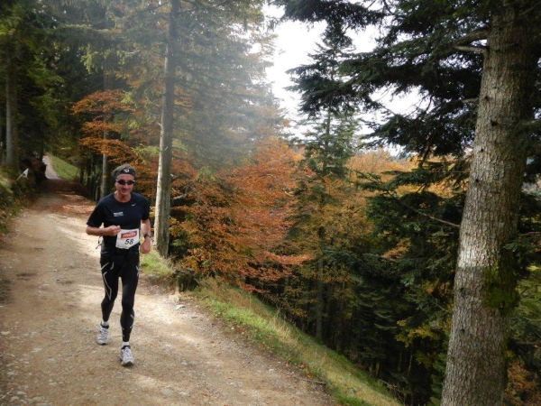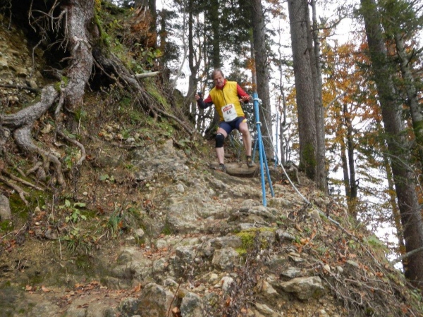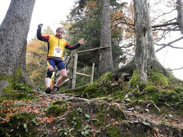 Es ist ein Trugschluss zu glauben, dass man es jetzt geschafft habe und es grundsätzlich nur noch abwärts gehe. Das Profil auf der Website verleitet zur Unterschätzung dessen, was noch kommt. Für zwei Einheiten Gefälle gibt es mindestens eine Einheit Anstieg. Von hinten höre ich Wolfram rufen: „Schon wieder geht es hoch, ich wusste, dass der Lauf einen Haken hat!“ Mehrere von diesen Haken, würde ich meinen, und Ösen gleich dazu. Und das ist nur ein Teil der Wahrheit. Die Wegbeschaffenheit ist der andere. Wer bisher den Ausführungen der Biologen gefolgt ist und geglaubt hat, Wurzel sein dafür da, den Bäumen Halt zu geben und sie mit Nährstoffen zu versorgen, dem erschließt sich spätestens hier ein weiteres Geheimnis. Wurzeln sind dafür da, dem Trailläufer den Halt zu nehmen und ihm die Nährstoffe zu entziehen.