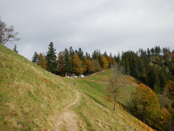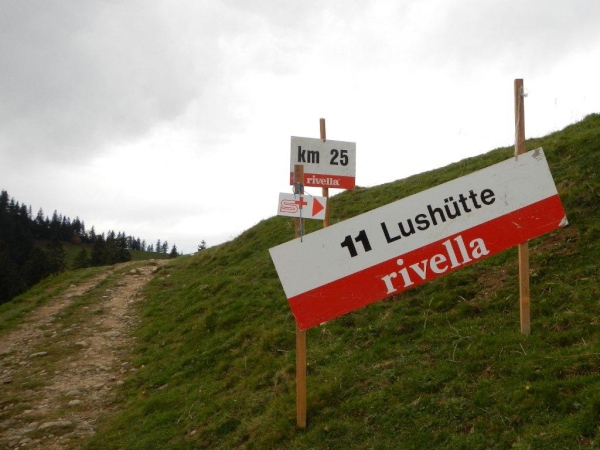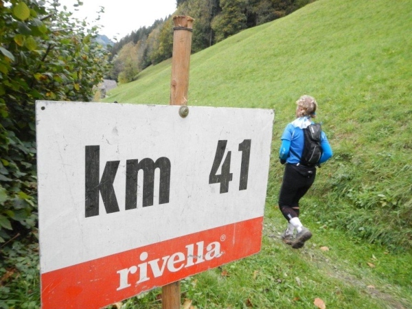 Auch beim nächsten Posten bei Kilometer 30 machen wir einen langen Halt. Die freundliche Helferschar hat noch jedes Jahr einen weiteren Tod abgewendet und mich mit Süßem versorgt. Heute komme ich in den Genuss von Sachertorte. Es ist gemütlich und gäbe es nicht ein Zeitlimit, würde ich noch länger in dieser Freiluft-Gaststube verweilen. Doch mittlerweile sind wir die beiden Letzten im Marathonfeld und hinter uns folgt nur noch eine Staffelläuferin. Oben beim Wald tritt bereits der Sensenmann in Erscheinung und räumt die Streckenmarkierung ab. Wir geben Fersengeld und schließen zu den anderen beiden auf, die sich keine ausgedehnte kulinarische Pause gegönnt haben.