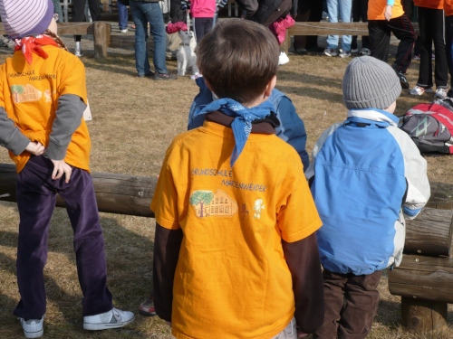 Nicht nur die Großen sondern auch die Kleinen machen sich langsam für ihren Lauf fertig. Die abgesperrte Straße im Start/Zielbereich füllt sich langsam. Um 10 Uhr sollen die ¼, ½, ¾ und Marathonis zusammen starten. Es wird langsam eng auf der Straße denn es tummeln sich um die 570 Teilnehmer möglichst nah am Startbanner.
