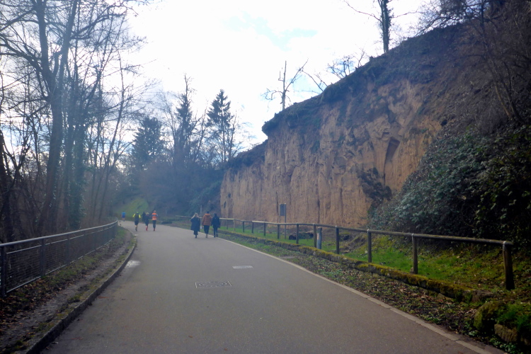 Nur wenige hundert Meter später erblicke ich das „Golden Gatele“, über das wir in Kürze zum dritten Mal auf die andere Seite des Neckars wechseln werden. Errichtet wurde der Max-Eyth-Steg 1989 als Hängebrücke, die von zwei Masten getragen wird. Der 114 Meter lange Steg wird von mehreren Stahlseilen gehalten und ähnelt tatsächlich etwas der Golden Gate Bridge, auch wenn diese natürlich ganz andere Ausmaße vorweisen kann. Auf der anderen Seite erreichen wir den Ortsteil Münster und laufen nun an den besten Weinlagen Württembergs, dem Cannstatter Zuckerle entlang, jedoch nie, ohne den Neckar aus den Augen zu verlieren. Weiter geht es in Richtung Bad Cannstatt. Die „Rakete“ wartet auf uns.