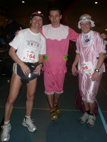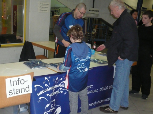 Waren im letzten Jahr die Infrastrukturverhältnisse noch zu klein bemessen, so ist hier in der Halle dieses Jahr viel Platz. Aber auch tote Hose. Die etwa 160 Marathonläufer kommen aus ganz Europa, einige auch aus Übersee - anscheinend gibt es doch nicht so viele Verrückte auf dieser Welt.