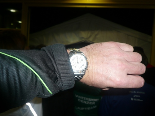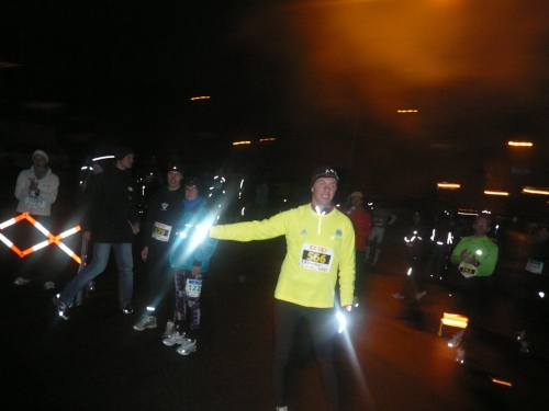 Am Rand kauern ein paar 10 km-Läufer, mit Gesichtern wie vergessene Schokoladennikoläuse, und ein paar Halbmarathonläufer, die mit offenem Mund unseren Laufberichten lauschen und uns offensichtlich sehr bewundern.