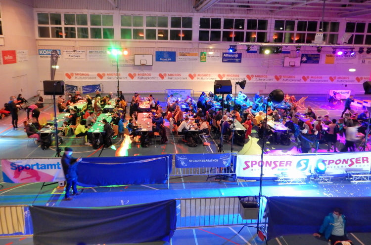 Ich bin dankbar, dass die Verantwortlichen sich trotz der fast stündlich ändernden Verordnungen nicht haben davon abbringen lassen, den läuferischen Start ins neue Jahr durchzuführen. Es gilt 2G und die genauen Abläufe waren im Vorfeld auf der Website nachzulesen. Für die zahlreichen aus dem Ausland gemeldeten Teilnehmer kommen erschwerend die unter Umständen anderen Zertifikatsformate oder allenfalls in der Schweiz nicht anerkannte Impfstoffe dazu. Der ganze Ablauf mit Startnummernausgabe, Wertsachenverwahrung und Bewirtung läuft wie gewohnt, einfach mit den zusätzlichen Hürden von Zertifikatskontrolle und Maskenpflicht. Es macht den Anschein, dass die Mehrheit der Anwesend sich im Vorfeld darauf eingestellt hat, denn es geht alles ganz ruhig vor sich.