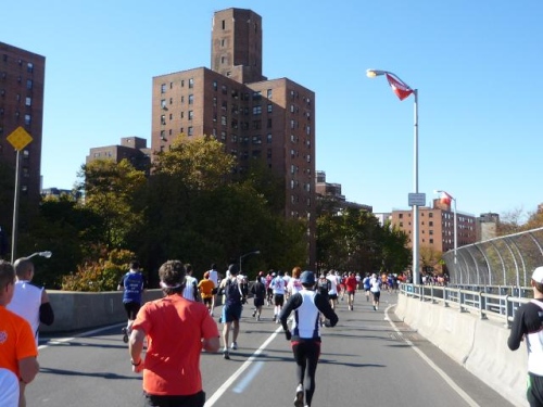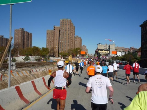 Aber eine Tatsache ist auch: Genauso wie es in Manhattan herunter gekommene, triste Winkel gibt, gibt es in der Bronx Villenviertel. Mit 1,35 Mio. Einwohnern ist die Bronx immerhin so groß wie etwa München und im Übrigen der einzige Stadtbezirk New Yorks, der auf dem Festland liegt. Hier ist Süden der Bronx ist aber tatsächlich die Gegend, die man zu einer anderen Zeit wohl besser meidet. Als Marathoni muss man sich aber heute nicht fürchten. Ganz im Gegenteil: Die Stimmung ist hier genauso ausgelassen wie in den anderen Stadtbezirken, wir werden ebenso euphorisch begrüßt, auch wenn die Leute einen etwas rauheren Charme haben mögen.