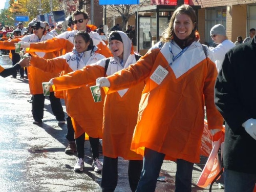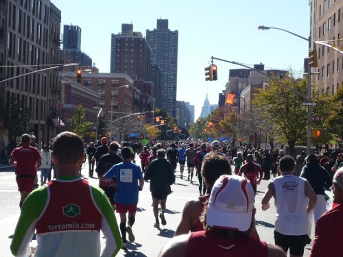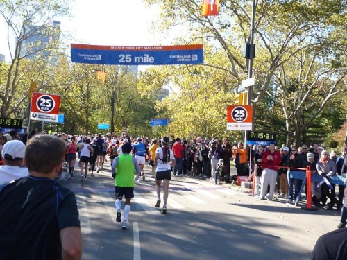 3,5 Meilen bzw. 5 km führt uns die First Avenue schnurgerade in stetigem leichten Auf und Ab nach Norden. Erst weiter im Norden, als die Häuser niedriger und die Umgebung etwas weniger propper wird, werden die Reihen der Zuschauer dünner. Aber auch hier sind es immer noch mehr, als bei einem „normalen“ City-Marathon an gutbesuchten Stellen üblich sind.