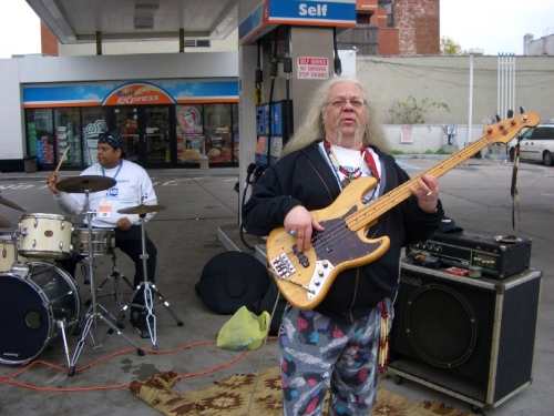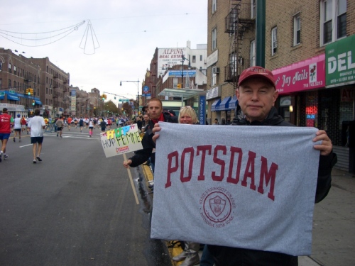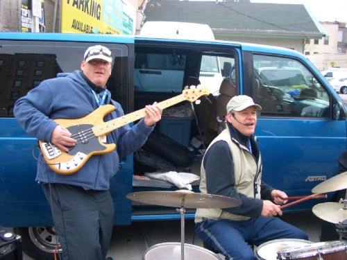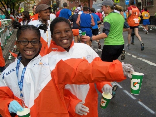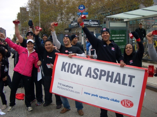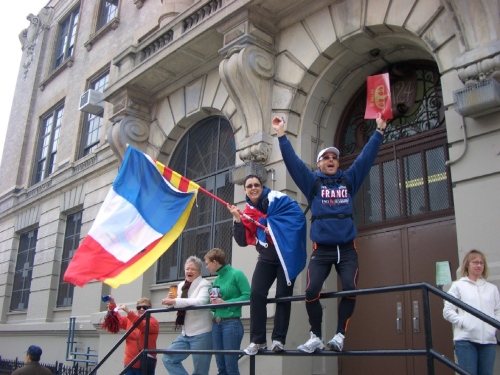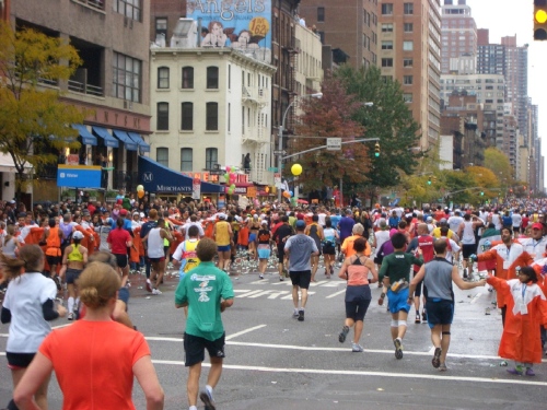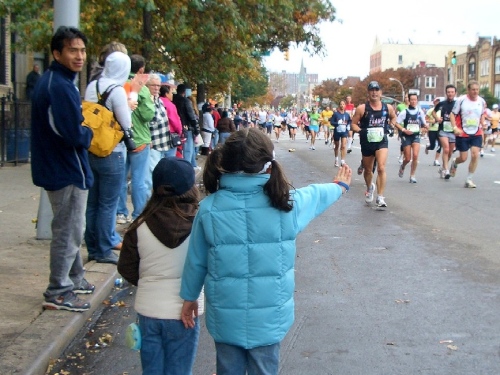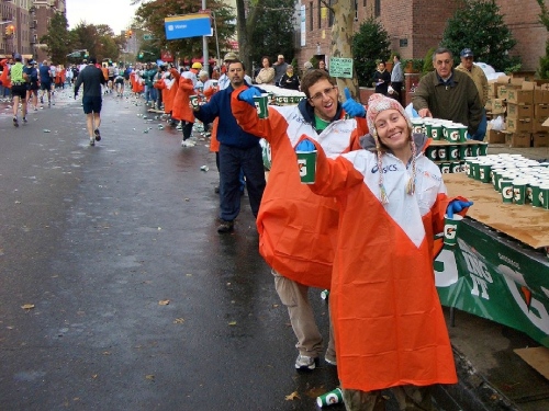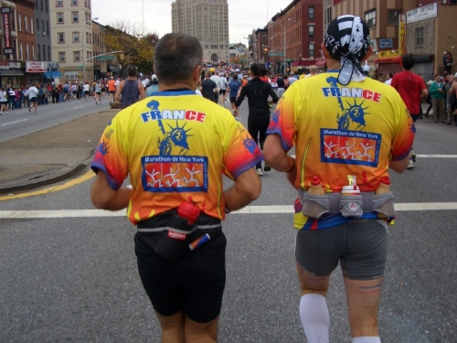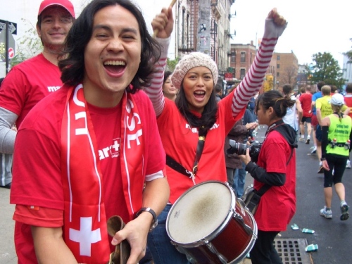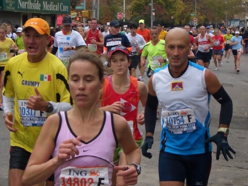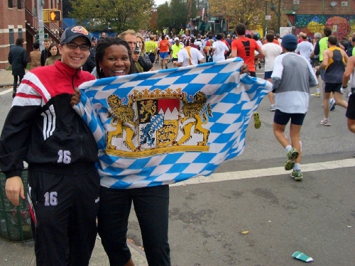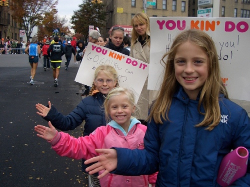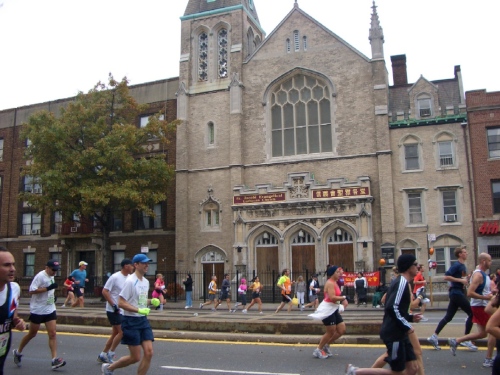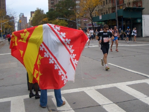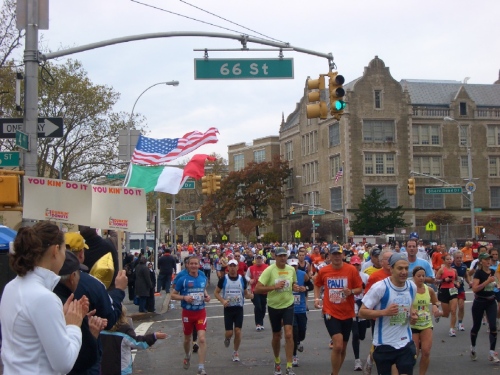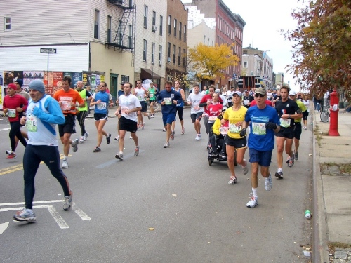 Meile drei, Bay Ridge. Bei einem Musiker sehe ich schon eine rote Nikolausmütze. Ja, is denn scho wieda Weihnachten? Verpflegungsstelle mit Gatorade und Wasser schließt sich an. Verdursten muss hier keiner, denn alle ein bis zwei Meilen gibt es da die Tankstellen. Es reicht dicke, zumal die Temperatur heute keine Sprünge nach oben machen wird.