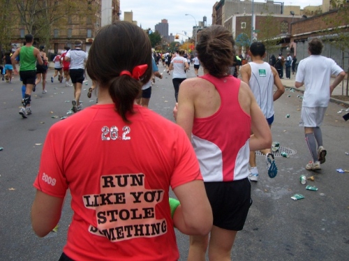 „Run like you stole something“ lese ich auf einer Läuferrückseite. Es geht auf der 5th Avenue in Richtung Downtown. Wer jetzt aber meint, das geht bergab, der täuscht sich. Downtown ist der Süden Manhatten, Uptown ist im Norden.