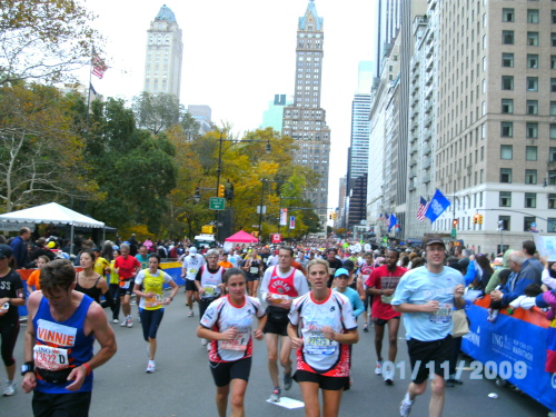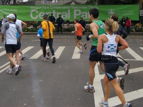 Meile 25. Unser Kurs führt noch mal kurzzeitig aus dem Park heraus. Central Park South, auf dieser Strasse nochmals leicht bergan.