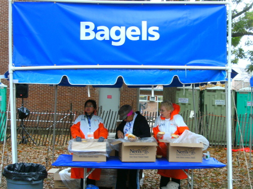 Medaille und Verpflegungsbeutel werden überreicht, dann heißt es weitergehen, bis der eigene UPS-Wagen erscheint. Dort muss ich ein wenig warten, bis ich meinen Beutel erhalte.