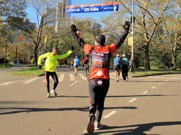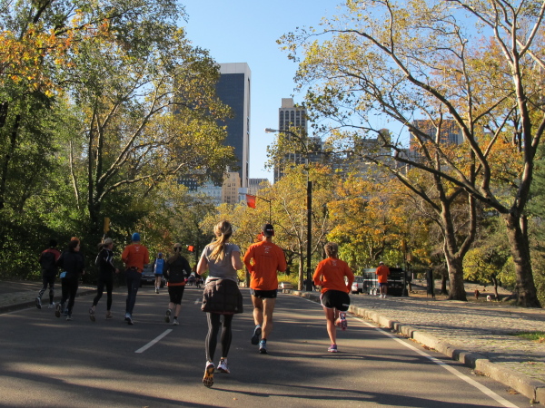 Genau genommen sind zwei Marathons ausgefallen. Denn ursprünglich hatte die Reisegruppe des LT Hemsbach am Donnerstag den ersten LT Hemsbach Central Park Marathon geplant, der auf dem Vereinsportal sogar offiziell ausgeschrieben war. Von einem Läufer weiß ich definitiv, dass er alleine wegen dieses Marathons nach New York kommen und sich den offiziellen Marathon wieder zuhause im Fernsehen ansehen wollte. Wolfgang hat sich sogar diesen zusätzlichen Marathon als seinen 100. ausgewählt. Der NYC-Marathon wäre sein 101. gewesen. Er ist der Glücklichste unter allen Läufern im Central Park. Denn sein Jubiläums-Marathon findet nun doch statt. Nachdem die meisten Vereinskameraden zwangsweise zuhause geblieben sind, findet Wolfgang vor Ort nun genug Mitstreiter, um den internen Richtlinien zu entsprechen. Und vermessen ist die Strecke ebenfalls.