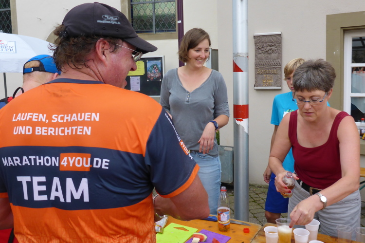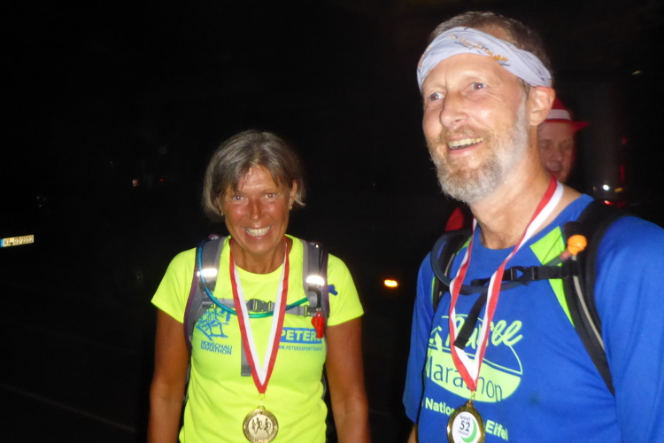 Mit herzlichem Applaus werden wir begrüßt. Trotz der späten Stunde ist das Fest noch in vollem Gange. Es gibt diverse Kuchen und Suppe, dazu allerlei Getränke. In dieser gemütlichen Atmosphäre bleiben wir länger als üblich sitzen. Inzwischen sind auch die letzten Läufer wohlbehalten im Ziel angekommen.