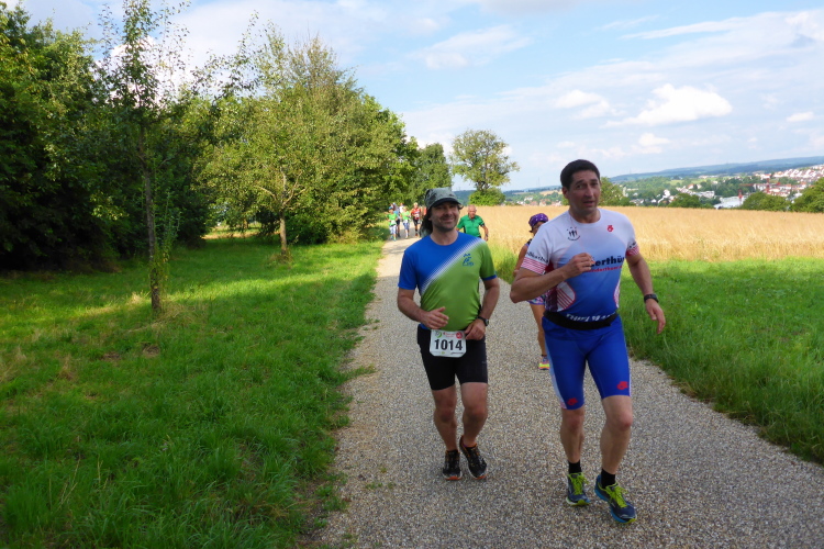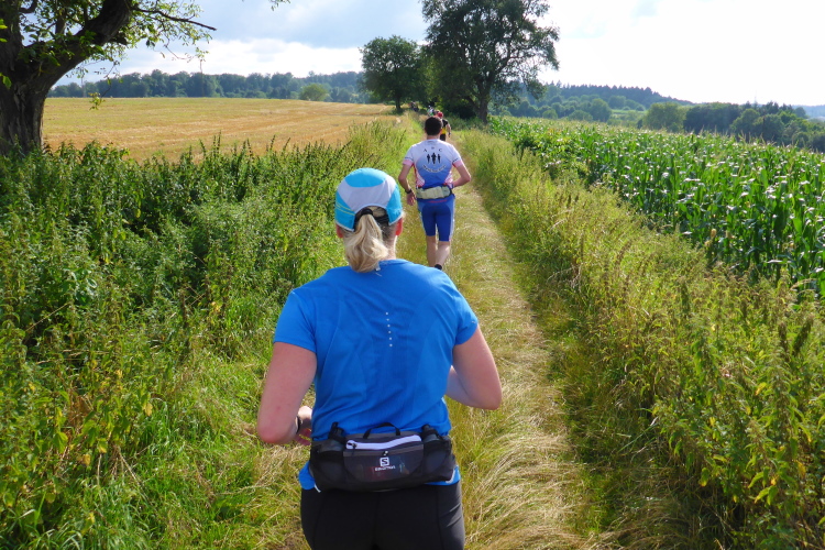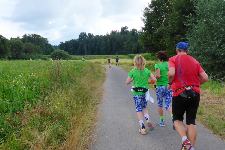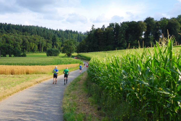 Es geht nicht mehr durch die Fußgängerzone, denn den Touristen sind die Eiskugeln aus der Waffel gefallen, wenn die Läufer vorbeigehechtet sind. Den Hang auf der anderen Seite hechte ich nicht hinauf, denn ich weiß, es geht gleich durchs hohe Gras. Dort lauern Zecken, die sollen sich erstmal um meine Vorläufer kümmern.