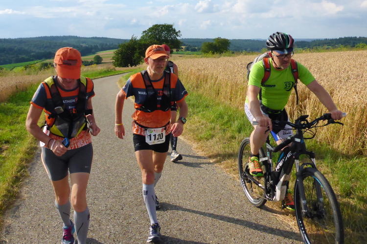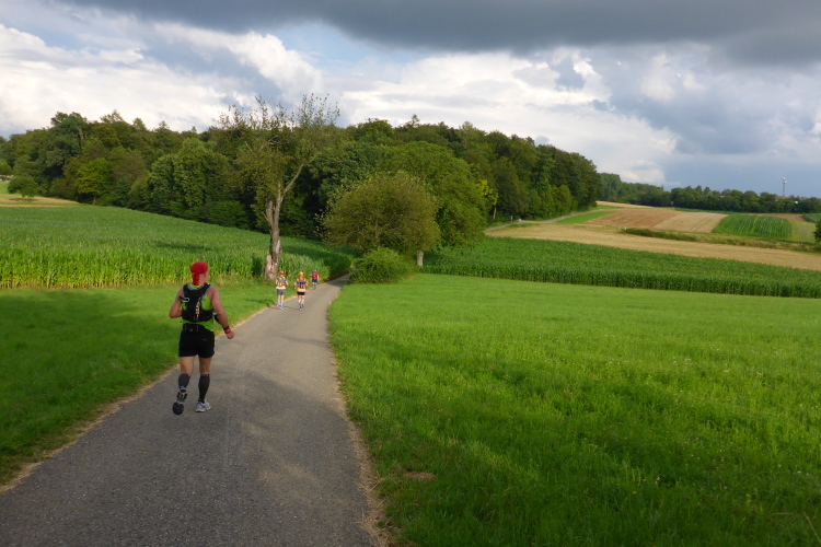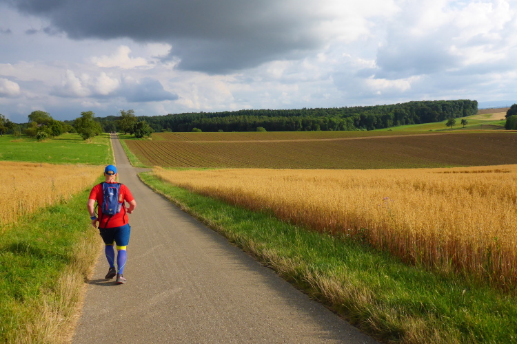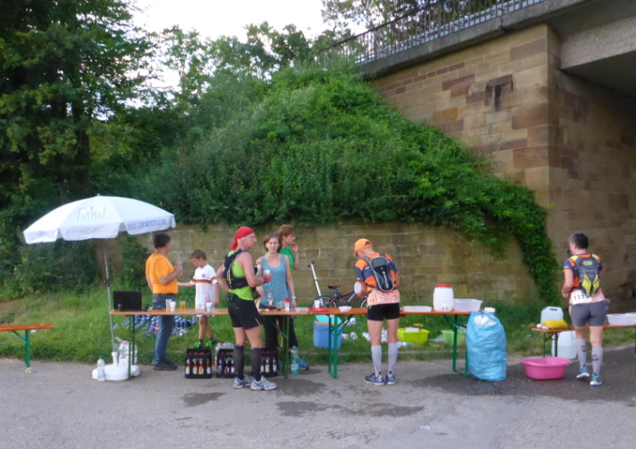 In Knittlingen (km 24) ist der dritte VP. Olis Gemahlin hat mir ein kaltes Bier reserviert. Ich kämpfe mich sofort weiter ins Weissacher Tal, einem wunderschönen Naturschutzgebiet, in dem ich mich unter Büschen ablege, weil mir die Beine wegknicken. Der Magen-Darm-Bereich will nicht, ich krümme mich vor Schmerzen.
