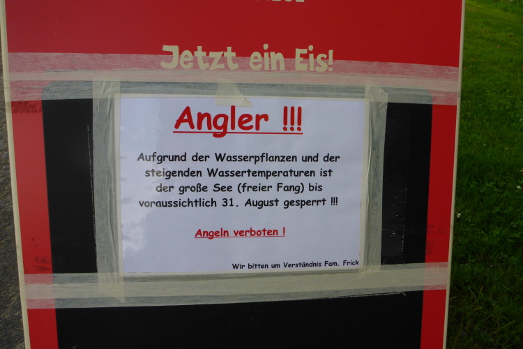 Die Angelteiche „Böllrichseen“ sind von Algen vergiftet und für Angler gesperrt. Algen! Wäre jetzt gerne Vegetarier, denn die Bratwurst grüßt wieder.