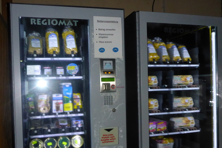 Nun ist also erst recht nichts mehr los in Großvillars (km 33). Ein Geschäft oder eine Kneipe sucht man vergeblich, man verkauft Erbsen- und Linsensuppe und Klopapier aus einem Automaten. Was soll ich mit Erbsensuppe? Was soll ich mit Linsensuppe?