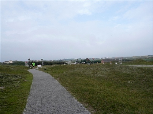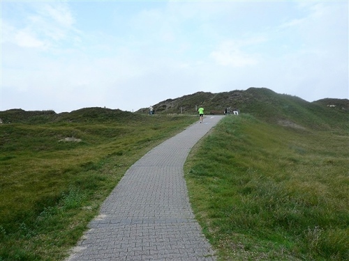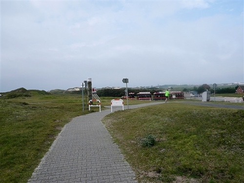 Den zweiten Streckenabschnitt empfinde ich als (noch) attraktiver. Es wechseln sich Bebauung und kleine Naturwege, teilweise unter Bäumen, ab, bevor es auf den für mich schönsten Abschnitt geht: durch die Dünen. Schmale, gewundene Pfade, immer mit ein paar Höhenmetern gespickt, führen durch eine einmalige Landschaft, die man auf dem Festland so wohl nicht erleben kann. Das ist wirklich etwas fürs Auge. Straßenüberquerungen werden dankenswerterweise allerorten von der Reservistenkameradschaft gesichert.