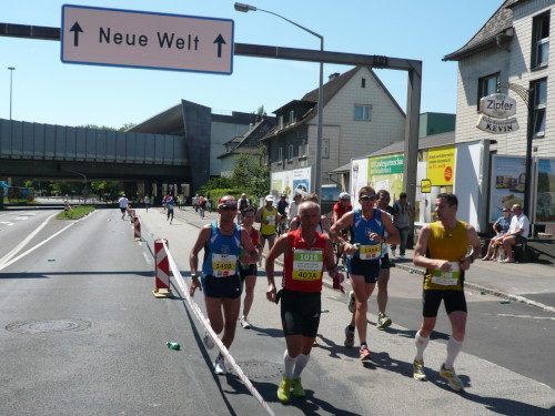 Viel Applaus bekommen wir von einer größeren Stammtischrunde, die Leute sind gut drauf, die Musik ist aufgedreht. Und die Frau am Fenster im Hochparterre des Familienhauses meine ich bei früheren Läufen hier schon gesehen zu haben. Den Leuten beim Laufen zuzusehen, scheint doch nicht ganz uninteressant zu sein.