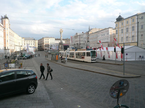 Außerdem sind so schon mal alle wichtigen Stationen für unseren morgigen Marathon abgelaufen. Der Startbereich an der VOEST-Brücke, das Ziel auf dem Hauptplatz in der Verlängerung der Nibelungenbrücke und mittendrin, in Höhe des Brucknerhauses, aber etwas oberhalb der Donau an der Straße, die Kleiderabgabe in der Oberbank. Dass das nicht unwichtig sein kann, werdet ihr noch in meinem Bericht lesen können. Mehr wie zwei Kilometer einfach sind dabei auch gar nicht zurückzulegen.