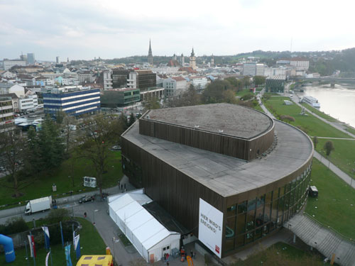 Das Brucknerhaus, wo die Marathonmesse und Ausgabe der Startunterlagen stattfindet ist von der Autobahn schon mal kinderleicht zu finden: Ausfahrt Linz-Hafenstraße dann noch einen Kilometer geradeaus der Hafenstraße/Untere Donaulände folgen und schon stehen wir vor der imposanten Halle. In ihrem normalen Leben erfüllt sie ihren Zweck als Linzer Konzerthaus. Benannt ist sie nach Anton Bruckner, dem bedeutendsten Komponisten Oberösterreichs. 200 Veranstaltungen zieht man hier im Jahr durch. Neben den vielen Klassik-Konzerten sind demnächst u. a. auch Elton John und Ludwig Hirsch zu Gast.
