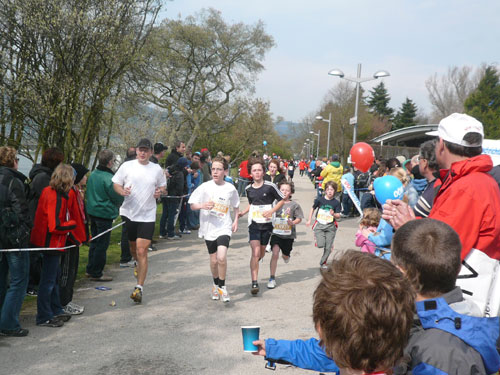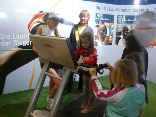 Vor den Fenstern, im Donaupark ist auch einiges geboten. 1.500 Kinder und Jugendliche sind beim ASICS Juniormarathon am Start und kämpfen um Siege in vielen, vielen Altersklassen und Bewerben. Die Siegerpokale konnte ich schon mal begutachten, sie stehen in der tollen Konzerthalle bereit zur Vergabe. Und es sind eine gewaltige Anzahl. Aber kein Wunder, die jüngsten Sportler sind gerade mal 4 Jahre alt, vielleicht kann man ja den einen oder anderen in ein paar Jahren auf der großen Strecke bewundern. Ihre Distanzen mit 42 Meter, 421 Meter und 4.210 Meter hat man schon mal an den Marathon angelehnt.