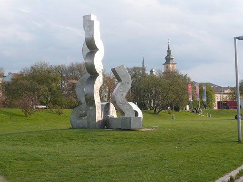 Kunst- und Naturliebhabern – zumindest das sind wir Läufer doch alle – kann ich nur einen Spaziergang durch die Donaulände empfehlen. Gemeint ist damit der öffentliche Park, der im Stadtzentrum zwischen der Nibelungenbrücke und der VOEST-Brücke das südliche Donauufer bekleidet. Zwölf Großplastiken von international erstrangigen Künstlern aus sieben Nationen sind hier und im Parkbereich des Brucknerhauses derzeit vereint und sollen im Laufe der Zeit um weitere Werke ergänzt werden. Zudem befinden sich auf der „Lände“ das Kunstmuseum Lentos, das nachts in unterschiedlichen Farben leuchtet, wie im Übrigen auch das Ars Electronica Center auf der gegenüberliegenden Uferseite, wofür sich auch ein Nachtspaziergang anbietet.
