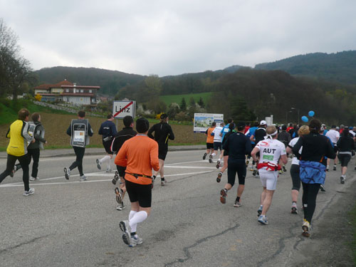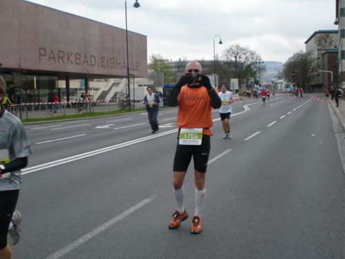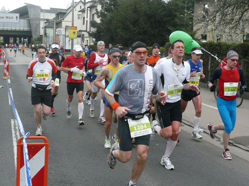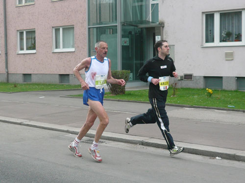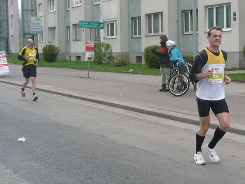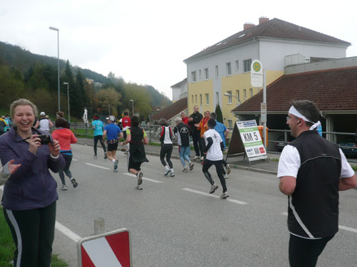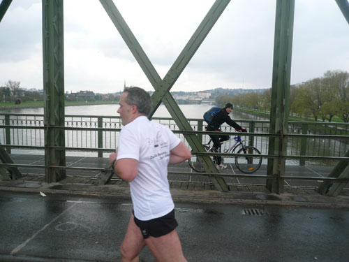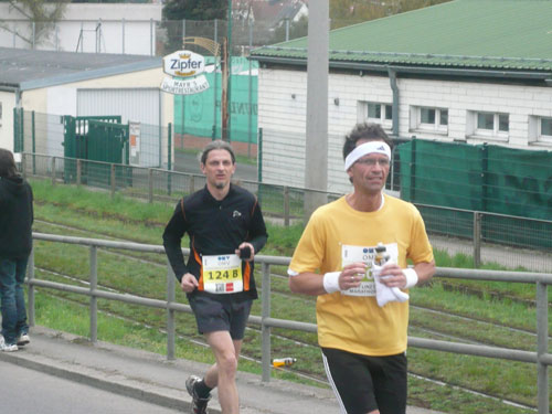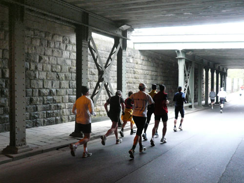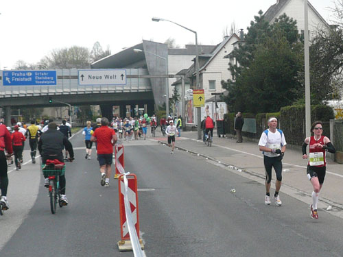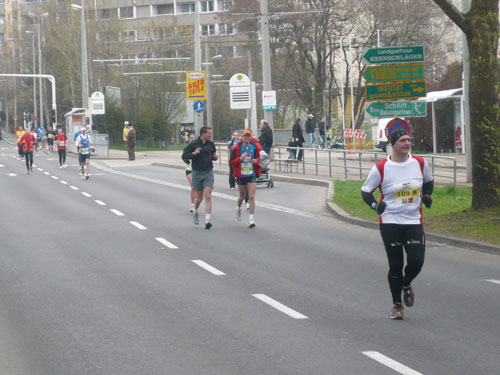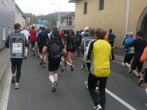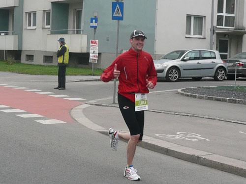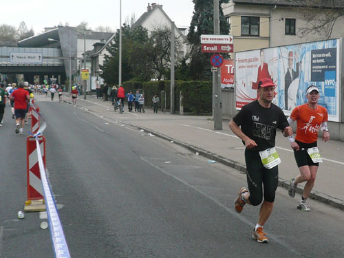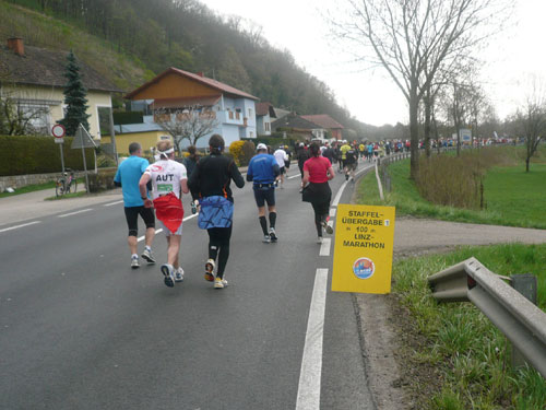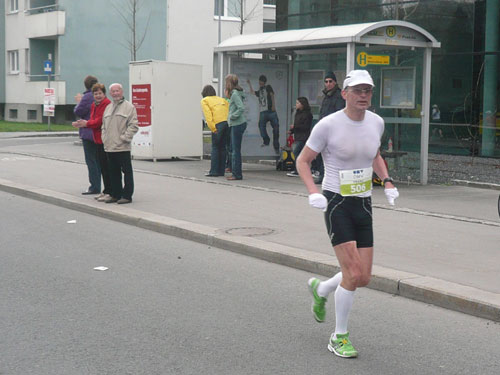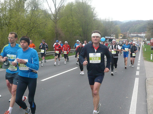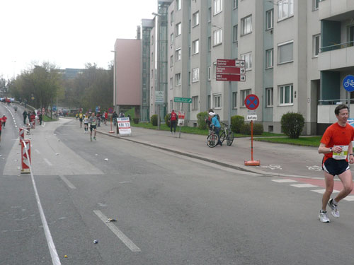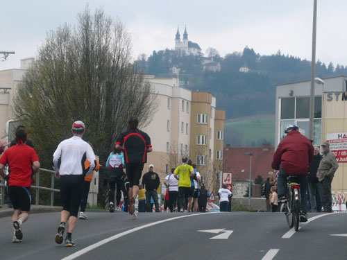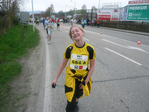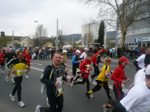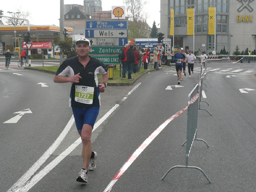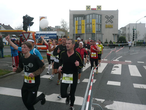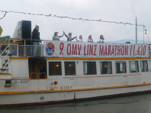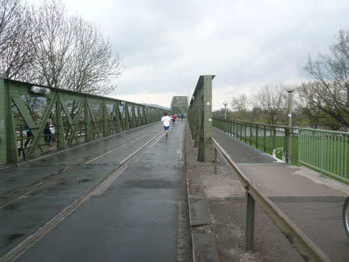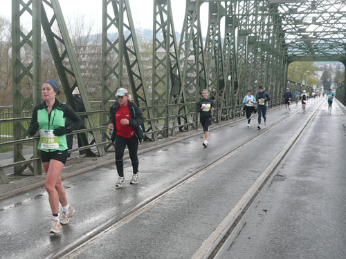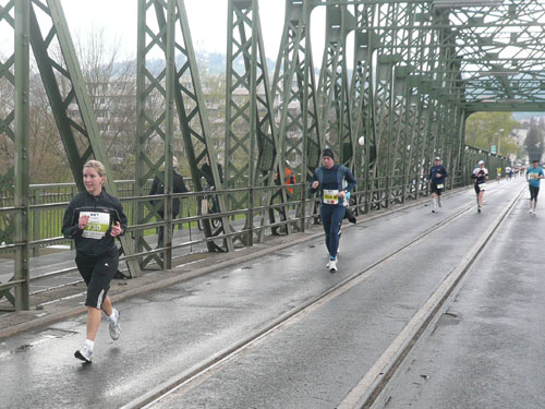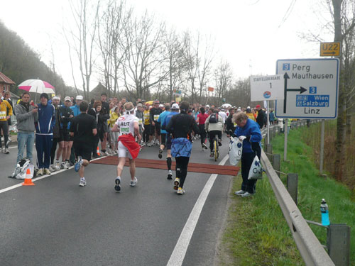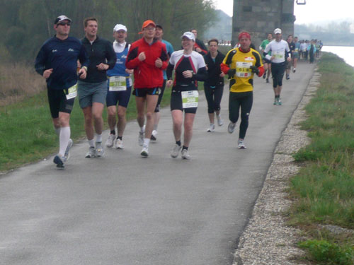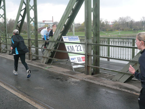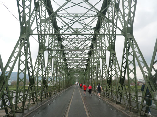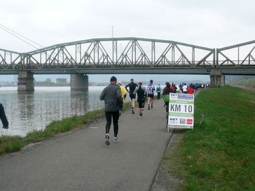 Zum dritten Mal hintereinander konnten die Linzer ihren Marathon auf unverändertem Kurs starten, ob das noch öfters der Fall sein wird steht in den Sternen. Die wunderschöne Eisenbahnbrücke hier ist nämlich baufällig und eine eventuelle Renovierung ab 2013 steht im Raum. Das wäre wirklich jammerschade, wenn den Marathonis dieser Genuss verwehrt bliebe.