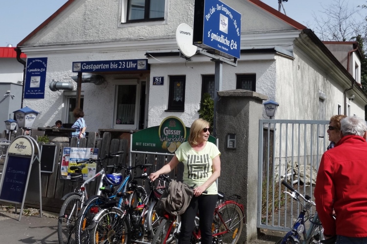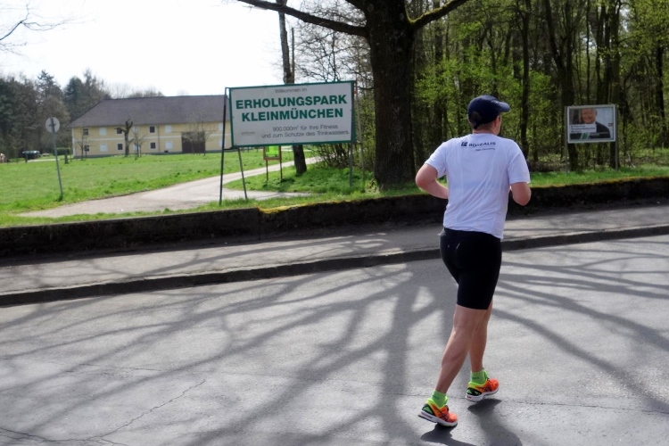Wir laufen in Richtung Neue Welt, ein interessanter Name. Bei der Moschee an der Salzburger Straße sehen wir kurz die Läufer, die schon 6,5 Kilometer weiter sind. Flott sind sie unterwegs. Wir genießen einen Frühlingstag mit vielen Blüten im Wasserpark. Es geht nach Kleinmünchen. Für uns lustig, denn wir kommen aus "Ganz-Groß-München", wie wir laut und deutlich verkünden.