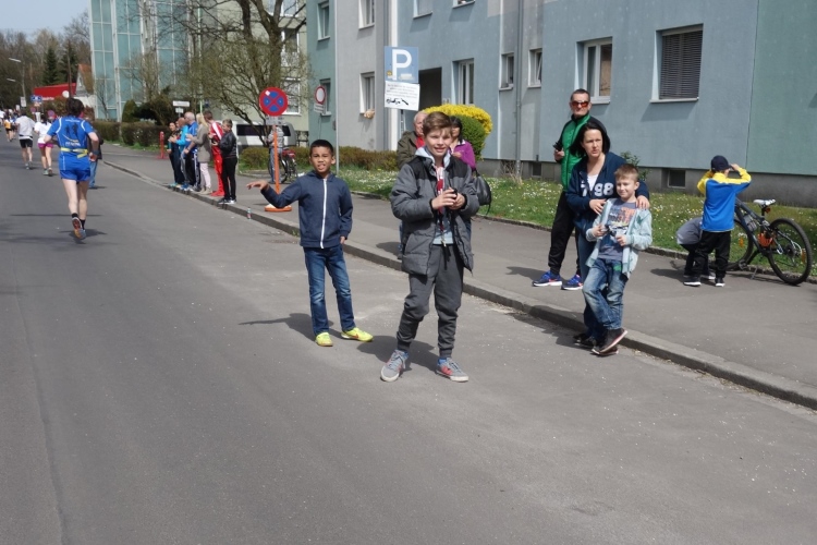 Am Ende des Parks stehen die abschließenden neun Kilometer auf dem Programm. Bei Kilometer 35 noch einmal Staffelwechsel und bekannte Laufstrecke bis ins Ziel. Anscheinend haben einige Staffeln ihre jüngsten Läufer für diesen letzten Abschnitt gemeldet. Ein Dreikäsehoch zieht locker davon. Auch jetzt harren noch viele Zuschauer aus. Oft sind bekannte Gesichter darunter. Und auch nach dreieinhalb Stunden haben die Bands nichts von ihrem Elan eingebüßt.