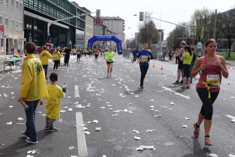 Wir holen uns ein Bierchen am Pfarrplatz und applaudieren den noch eintreffenden Sportlern. In der Landstraße wird ab 15.30 Uhr ruckzuck abgebaut. Beeindruckend, wie viel Organisationsaufwand in so einem großen Lauf steckt. Trotzdem sind auch die Verantwortlichen begeistert, da das Event ca. 5 Millionen Euro an Wirtschaftskraft nach Linz bringt.