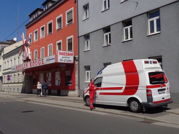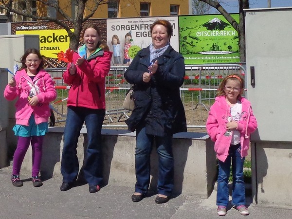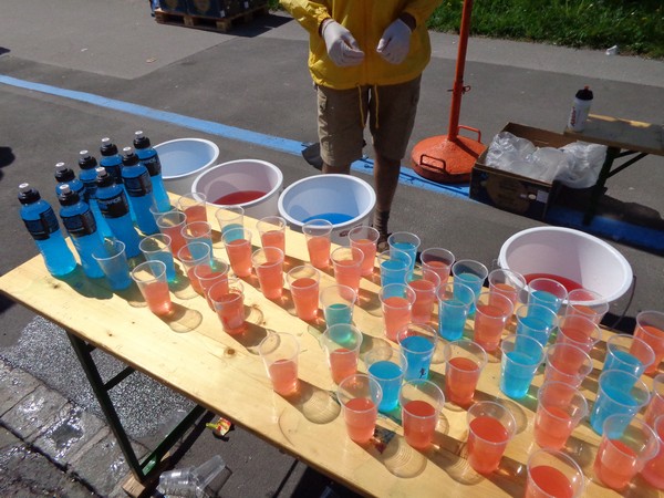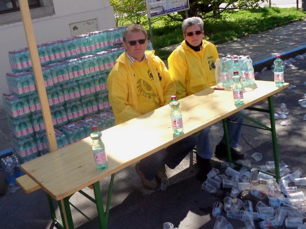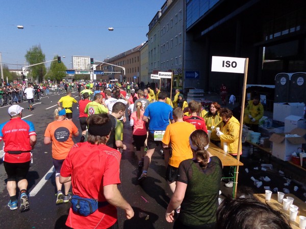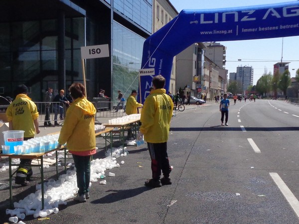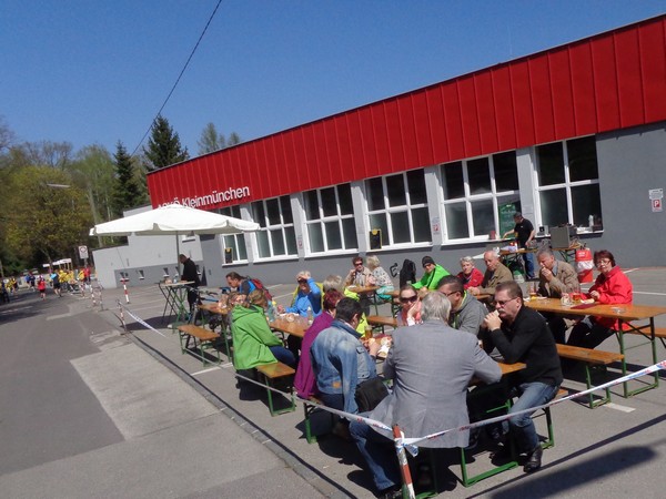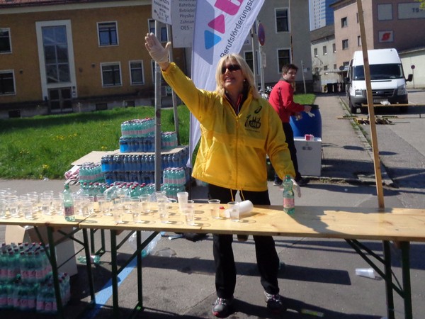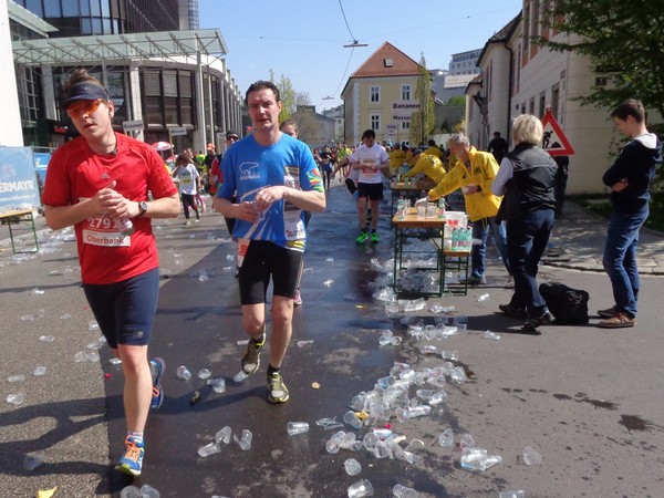 Im Stadtteil Kleinmünchen, km31, genießen die Sportler vom ASKÖ die Mittagssonne, ich hingegen greife beim Cola zu. Ein junger Helfer findet es cool, dass ich Fotos mache unterwegs. Mittlerweile bremst mich das Knipsen kaum, ich habe erkennbar an Tempo verloren.