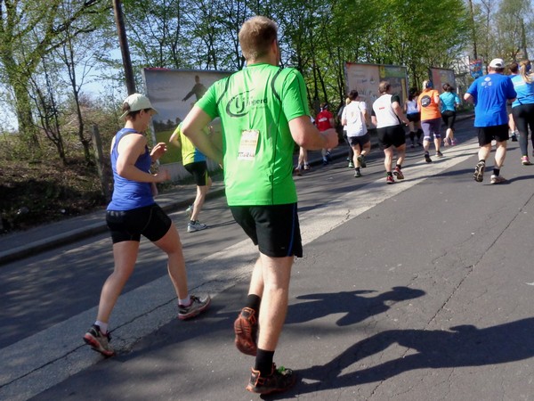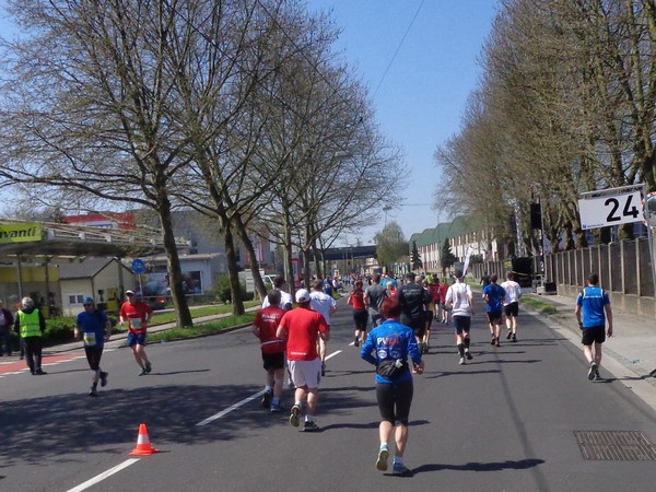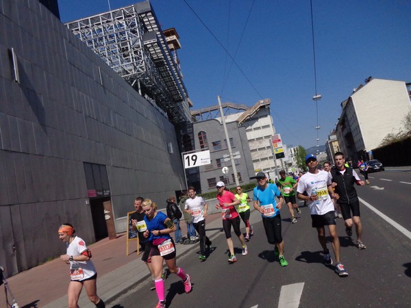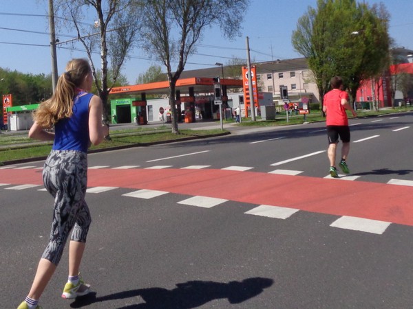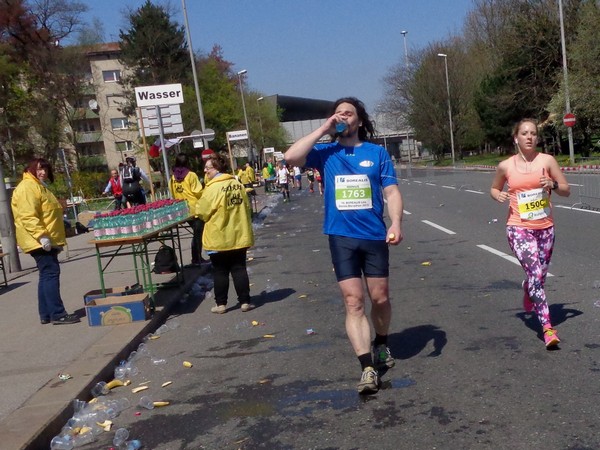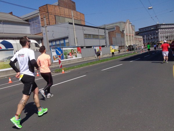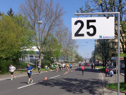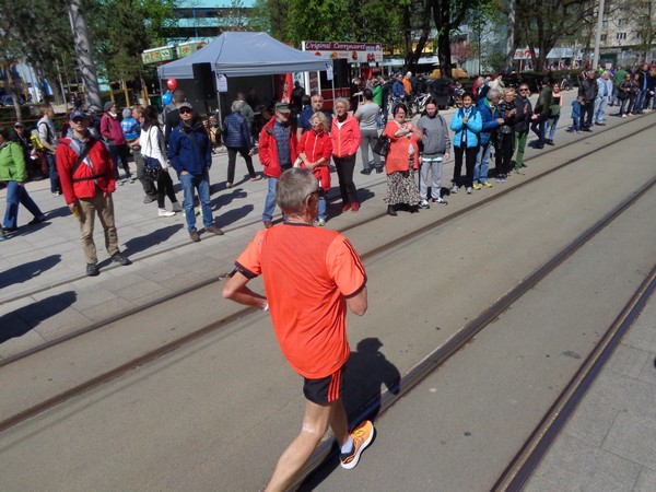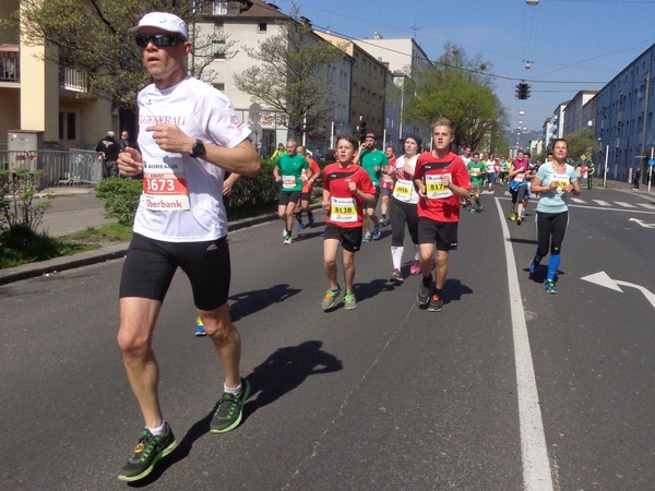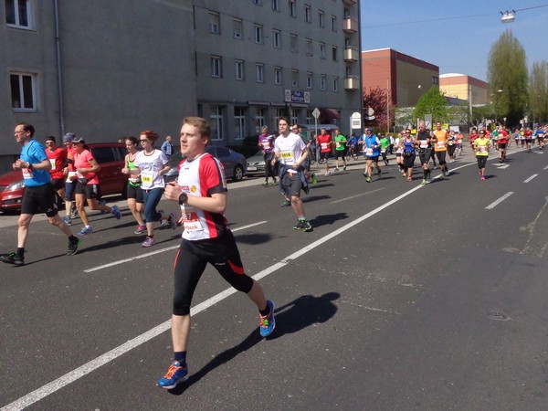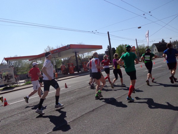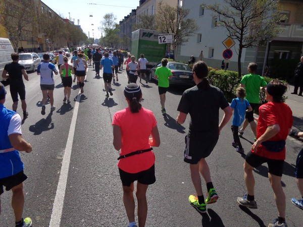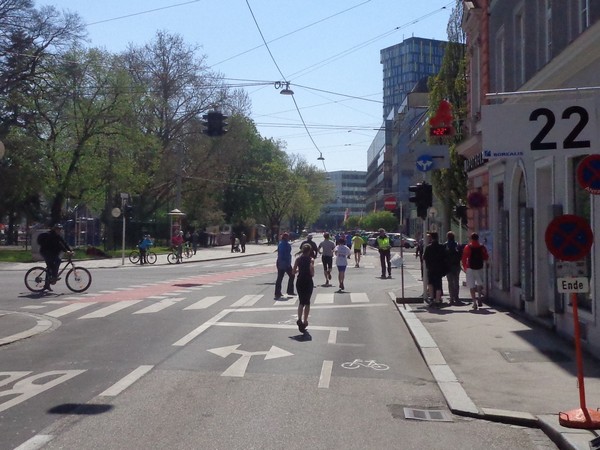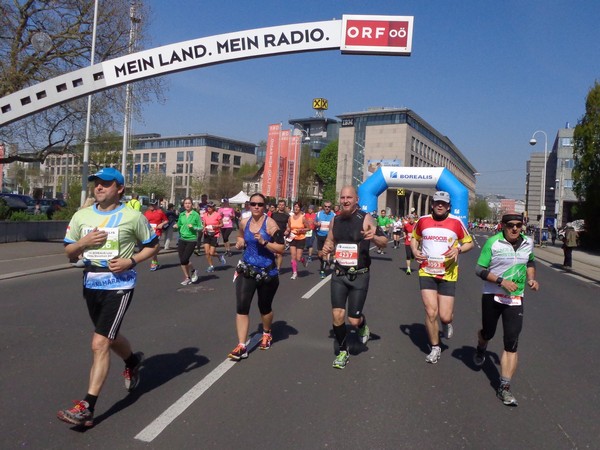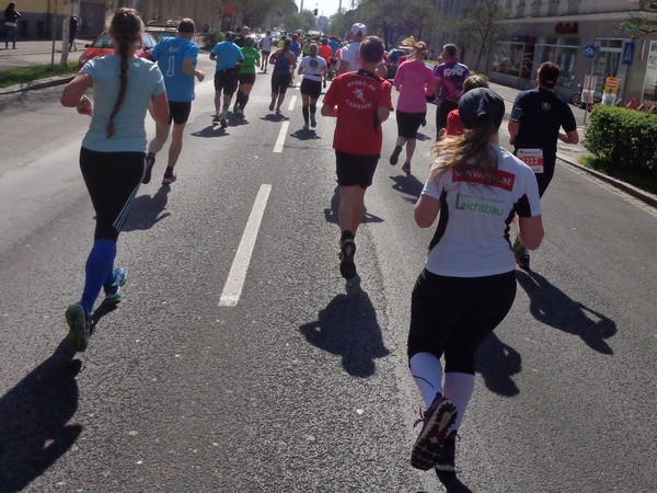 Von der Wiener Straße geht es rechts in die Unionstraße, Gegenverkehrsbereich. Susanne kommt mir entgegen, die bisher einzige Österreicherin mit über 100 Marathons. Netto, wie sich Dirk auszudrücken pflegt. Das heißt: zusätzlich ist sie einige sehr beachtenswerte Ultras gelaufen. Bei km24 überholt mich der 4h15-Schrittmacher, das war abzusehen. Meine Beinmuskulatur ist knapp vor dem Verkrampfen.