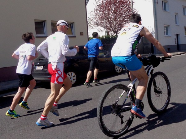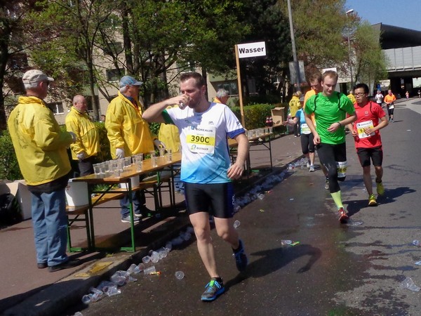 Cola nehme ich mir dann, wenn ich nach weiteren 21km wieder hier vorbei komme. Ich schnappe mir ein Flasche Römerquelle, ich habe ein Beutelchen PowerGel runterzuspülen.