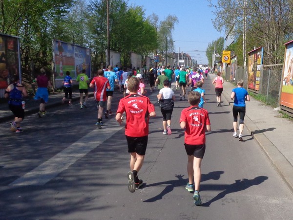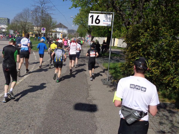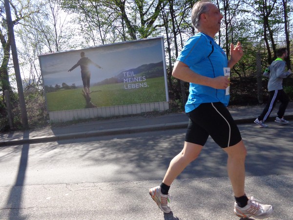 Ein junges Mädchen, vielleicht 15 Jahre, läuft nun links von mir. Sie macht nicht mehr den allerfrischesten Eindruck. Ich muntere sie auf: „Ah, du bist ja bald im Ziel!“ An ihrer gelben Startnummer ist sie als Staffelläuferin erkennbar. „Du Armer musst noch weiter, du tust mir leid!“, tröstet sie mich. Halb so wild, ich hab’ es ja nicht anders gewollt.