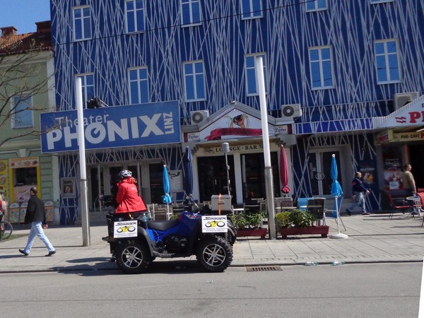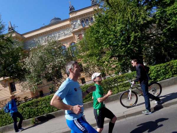 Ein Quad mit Kameramann braust an mir vorbei. Dieses Quad ist wohl dem schnellsten Läufer voraus gefahren, der ist nun im Ziel. Karl überholt mich, nun am Weg zu seiner Tochter. So frische Beine wie er hätte ich jetzt auch gerne. Vorbei am Volksgarten, an dem das Neue Musiktheater steht. Vor zwei Jahren eröffnet, wird es vom Publikum bestens angenommen. Unlängst gab man den „Ring des Nibelungen“, alle vier Teile. „Rheingold“ habe ich mir zu Gemüte geführt, für die anderen drei Teile fehlt mir das nötige Sitzfleisch.