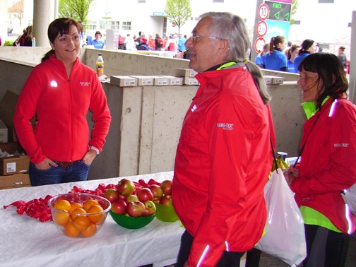 Labestellen (Wasser im Becher UND in der Flasche, Iso im Becher UND in der Flasche, Bananen, Coca-Cola, von allem war genug da, jederzeit; flinke, freundliche Helfer, soweit man sie bemerkte)