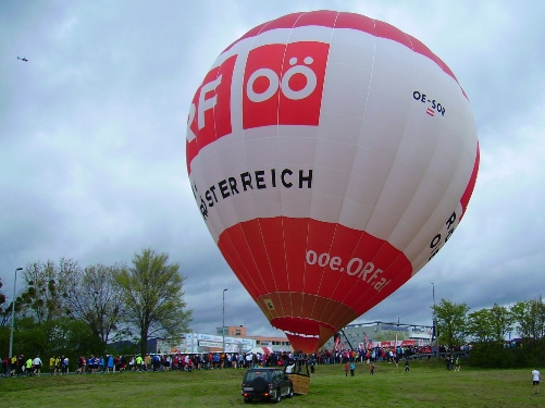 Von weitem sieht man den Heißluftballon, der am Boden festgezurrt ist, Hubschrauber kreisen. Als ich zum Start komme, sehe ich vorne ausgestopfte American Footballer stehen. Sie sollen die Masse davon abhalten, noch vor Beginn des Rennens der Elite in die Quere zu kommen. In der Startaufstellung und am Weg dorthin treffe ich wieder viele Bekannte und Freunde. „Dahoam is’ dahoam,“ wie man bei uns sagt!