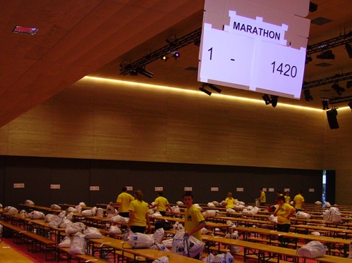 Samstagnachmittag war dann viel Betrieb, aber nennenswerte Wartezeiten gab es nicht. Dafür eine Autogrammstunde mit dem sehr sympathischen Viktor Röthlin aus der Schweiz, dem schnellsten Europäer auf der Marathondistanz. Er soll morgen den Halbmarathon unter 63min ins Ziel bringen. Ich treffe meine Freunde aus dem Frankenland, die morgen auch auf der halben Distanz starten werden. Das Wetter war perfekt. Der Wetterbericht für Sonntag prophezeit Regen und einstellige Plusgrade!