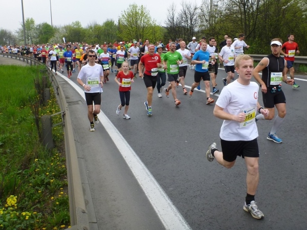 Bei Kilometer zwei fällt mit der Dieter auf, in seinen muskelbetonten Laufklamotten. Der Kurs biegt auf die Freistädter Straße ein und zusammen mit den Halbmarathonis wird es fast ein wenig eng. Die Stimmung ist toll. „Folge mir, ich lauf zum Kaiser Bier“ lese ich bei einem anderen auf dem Rücken. Gerne, aber Alk-Bier geht heute gar nicht, ich muss ja noch heimfahren.