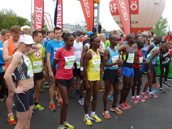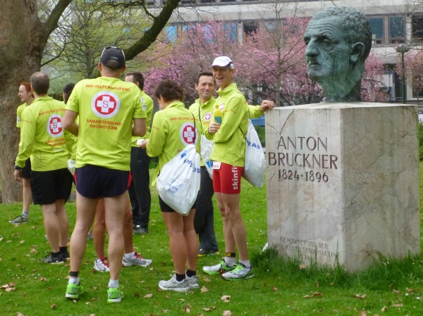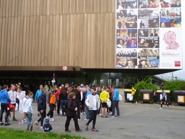 Im Hotel wird bereits ab 06.00 Uhr das Frühstück angeboten. Die Lage der Unterkunft ist genial, denn sie liegt zwischen Brucknerhaus (da kann man seine Kleidung abgeben) und dem Parkbad (hier kann man nach dem Lauf duschen). Zum Start sind es keine zehn Minuten Fußmarsch. Am Nebentisch hocken einige der schnellen Gazellen aus Kenia. Sind die deshalb so schnell? Ich sehe auf ihren Tellern Frühstücksbohnen mit einer Art Tomatensauce. Bei dem Mahl wäre ich höchstens schnell auf dem Häuserl.