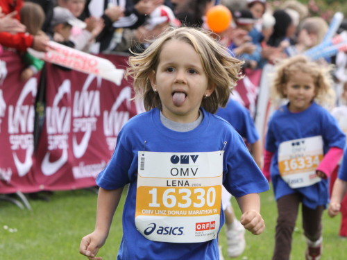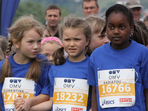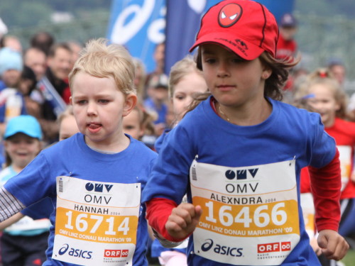 Hinter dem Brucknerhaus auf den Donauwiesen finden am Nachmittag die Kinder- und Jugendläufe statt, die hier in Linz mit einer selten erlebten Professionalität organisiert sind. ORF-Moderatoren und Orga-Chef Ewald Tröbinger führen gekonnt Regie und mehr als tausend Zuschauer entlang des 421,95 Meter langen Rundkurses sorgen für eine Atmosphäre, die ich mir für Sonntag wünsche. Startgebühr wird für die Nachwuchs-Runner keine erhoben. Trotzdem bekommen alle eine Startnummer mit ihrem Namen, ein T-Shirt und eine Medaille. Sogar die Zeit wird per Championchip ermittelt und die jungen Siegerinnen und Sieger geehrt.
