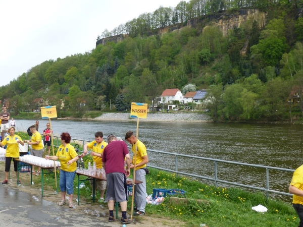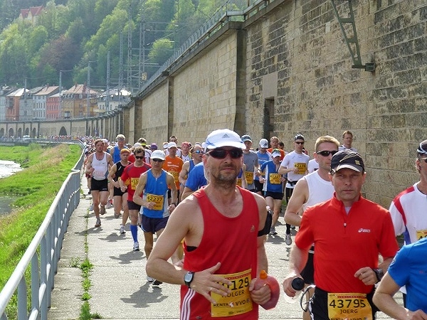 Aus unserer Ameisenperspektive bekommen wir von der Brücke nur ein Teilstück zu Gesicht, aber immerhin: eindrucksvoll ist dies allemal. Einen “richtigen” Ausflug zur Bastei sollte sich jedoch kein Marathoni entgehen lassen. Man kann übrigens auch ganz bequem mit dem Auto hinauf fahren.