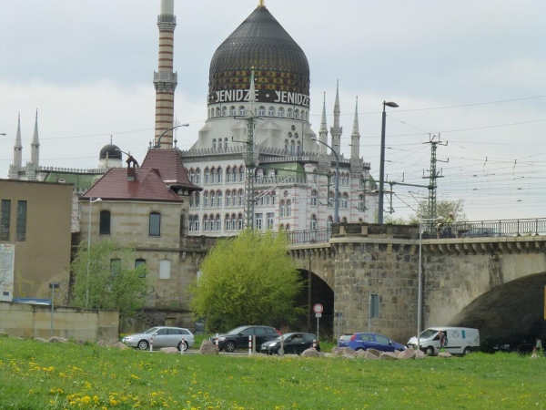 Unter der Marienbrücke hindurch empfängt uns zum Abschluss das wohl ausgefallenste Dresdner Baudenkmal: Yenidze. Dass sich hinter dem riesigen Prachtbau, der mit seiner spitzen Glaskuppel und den vielen Türmchen Sheherazades 1001 Nacht-Geschichten entsprungen zu sein scheint, ganz profan eine einstige Zigarettenfabrik verbirgt, ist eine Ironie der Geschichte: Denn mit diesem architektonischen Winkelzug wollte Fabrikant Hugo Zietz vor gut 100 Jahren lediglich das Verbot von Industriebauten mit hohen Schornsteinen in der Nähe der Kunst- und Kulturstätten Dresdens umgehen. Die Fabrikation hat die Zeiten nicht überlebt - die Fabrik schon.