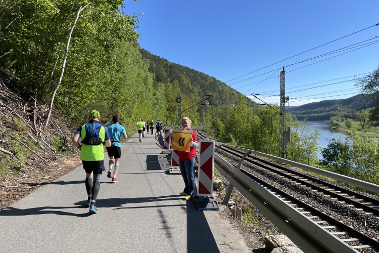 Etwas besser wird es auf halben Weg in Pirna, denn dort ist der Halbmarathonstart und ein Schwall Läufer steigt aus. Der Halbmarathon ist mit 2436 Finishern übrigens mehr als doppelt so stark nachgefragt wie der Marathon mit 1052. Neben diesen beiden Distanzen gibt es noch ein 10 km-, ein 5 km- und ein 2,7 km-Lauf. Insgesamt nehmen 5.642 Läufer teil.