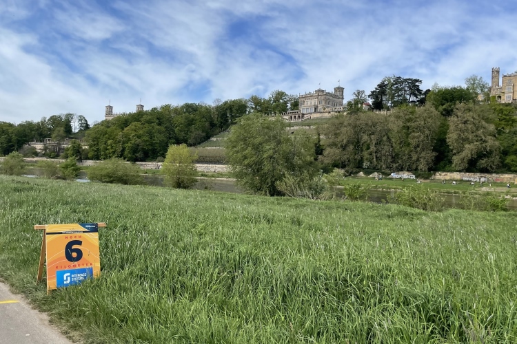 Kurz Zeit also, noch einmal die Strecke und Taktik zu reflektieren. Letzteres ist klar, gerade eben erst einigermaßen von Verletzung und Erkrankung kuriert, werde ich wohl das Zeitlimit von 6 Stunden voll auskosten. Zumal es heute mit ca. 25 Grad warm und sehr sonnig wird – ganz anders als das Training bei meist einstelligen Temperaturen. Zur Strecke: diese teilt sich im Grunde genommen in zwei unterschiedliche Hälften ein. Bis Pirna das enge Elbtal mit dem Elbsandsteingebirge, das eindrucksvolle Felsformationen bildet, danach eine eher weitläufige Fluss- und Parklandschaft mit prächtigen Villen.