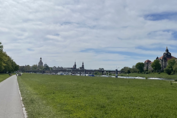 Ein bisschen zieht es sich nun schon bis zum Ziel und so bin ich froh, die letzte Getränkestelle bei km 4 zu erreichen, bevor wir die berühme Silhouette von Dresden erspähen. Passend begrüßt uns nun auch der Raddampfer „Dresden“.