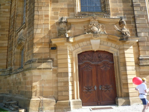 Wie kam es denn zu den Namen Vierzehnheiligen? Der Legende nach erschien 1446 dem Hirtenjungen Hermann Leicht 14 rot und weiß gewandete Kinder zusammen mit dem Jesuskind und taten ihm kund: „Wir sein die viertzehn nothelffer und woellen ein Cappeln haben.“ Drei Ritter, drei Bischöfe, drei Jungfrauen, drei Jünglinge, ein Abt und Christophorus, das sind die vierzehn Nothelfer, und daher kommt also der Name. Wenn Ihr die Namen wissen wollt, dann aufgepasst: Achatius, Ägidius, Barbara, Blasius, Christophorus, Cyriakus, Dionysius, Erasmus, Eustachius, Georg, Katharina, Margareta, Pantaleon und Vitus (Veit) sind die Helfer in allen Notlagen. Bereits 1448 wurde ein Altar dort geweiht. Dem Baumeister Balthasar Neumann blieb es bis zu seinem Tod 1753 vorbehalten, den Bau voranzutreiben. Die folgende Zeit meinte es dann nicht gut, denn Blitzeinschlag, Feuer, Säkularisation und Wassereinwirkung sowie gar ein staatliches Verbot der Wallfahrt machten der Basilika zu schaffen. Jetzt ham’ mer wieder was glernt. Wer am Vortag früh genug dran ist, der kann einen Marathon-Gottesdienst mit einem Orgelkonzert besuchen. Es lohnt sich.